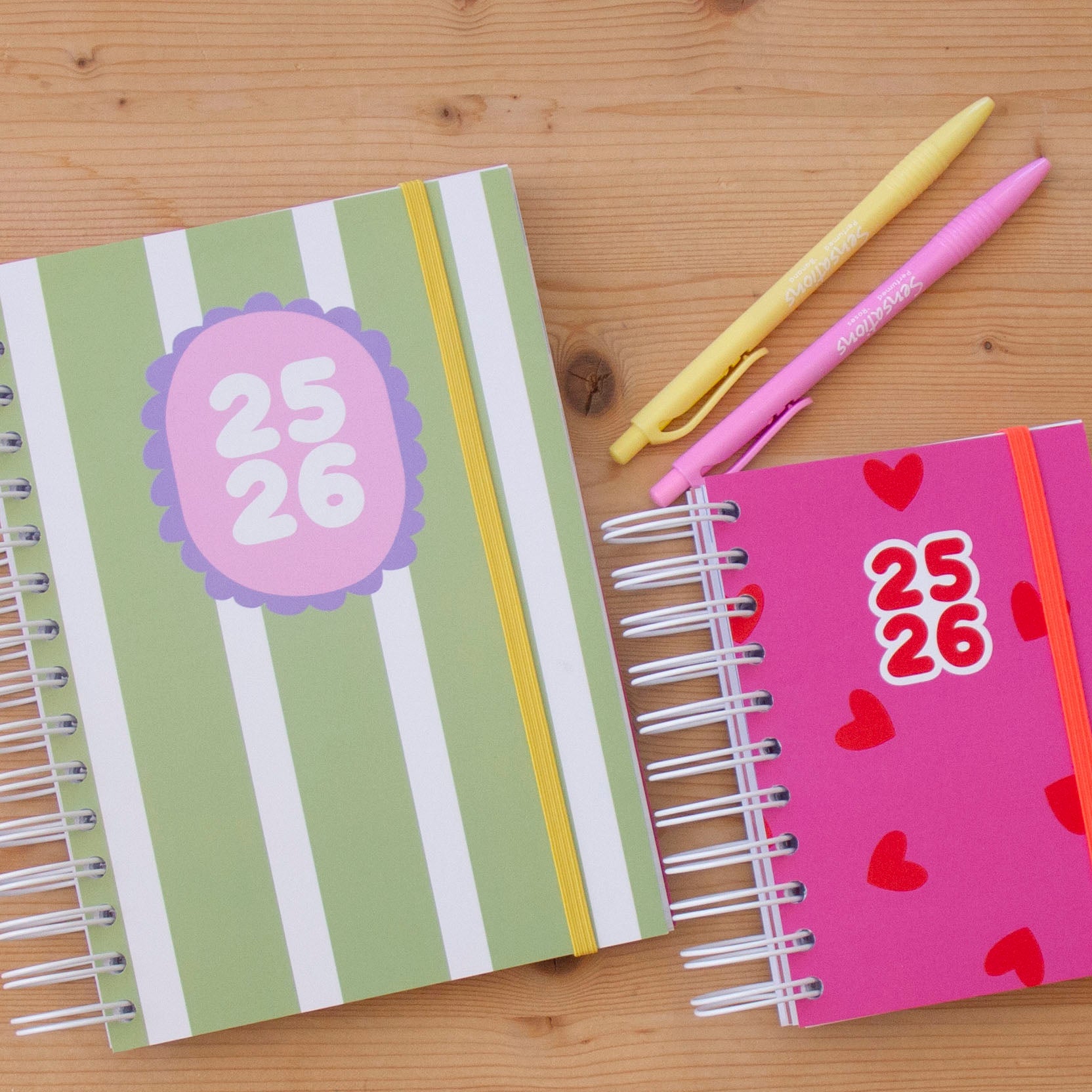 Agenda A5 Diária 2025/2026 Capa Dura PINK STRIPES
