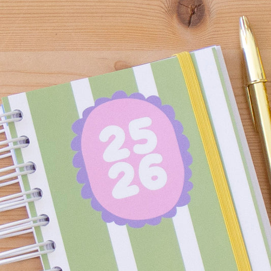 Agenda A5 Semanal 2025/2026 Capa Dura MINT STRIPES*