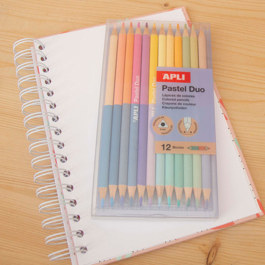 Kit 12 Lápis de cor Pastel Bi Color Apli