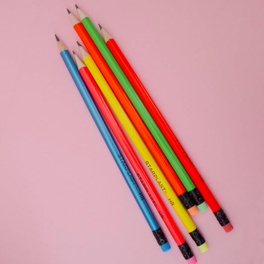 Kit 6 Lápis HB Simples Néon