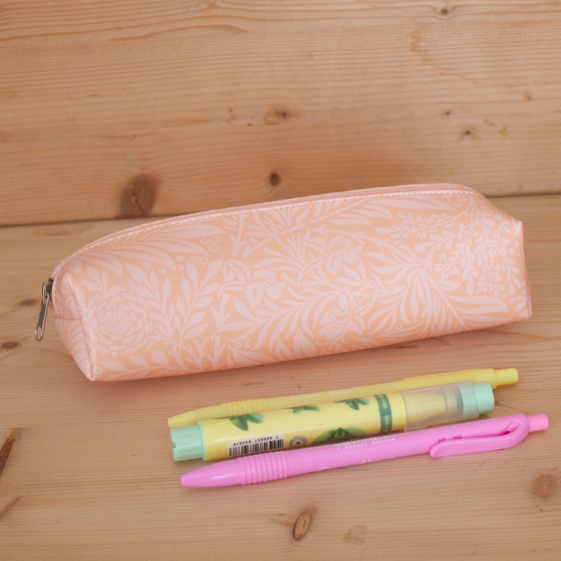 Este estojo em napa impressa com padrões Rosa com Canela é lindo para usar nas aulas, ou mesmo na carteira com as canetas todas!