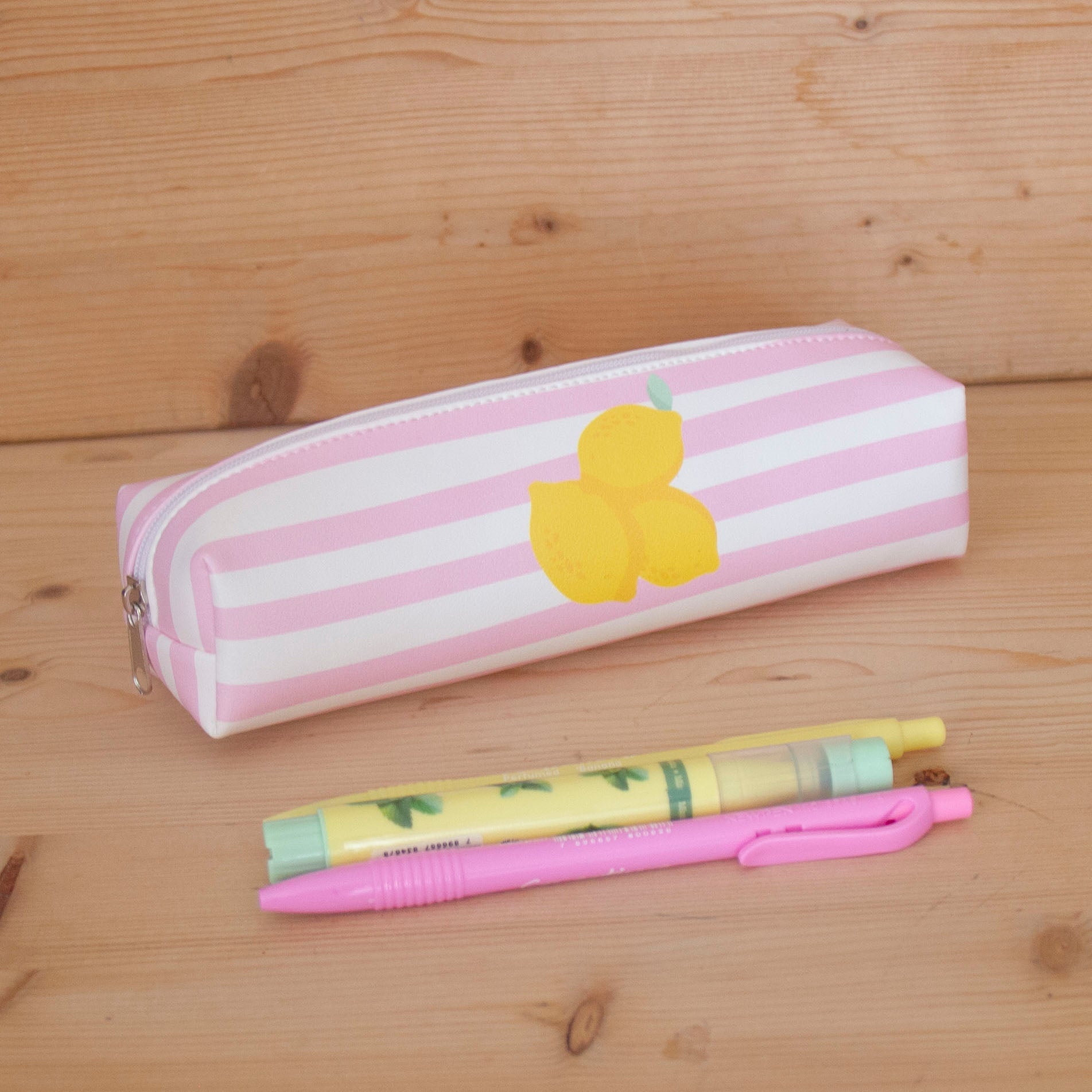 Este estojo em napa impressa com padrões Rosa com Canela é lindo para usar nas aulas, ou mesmo na carteira com as canetas todas!