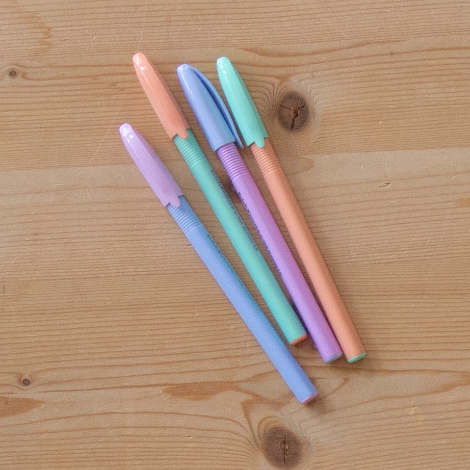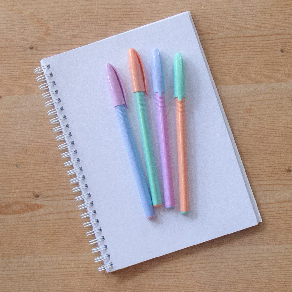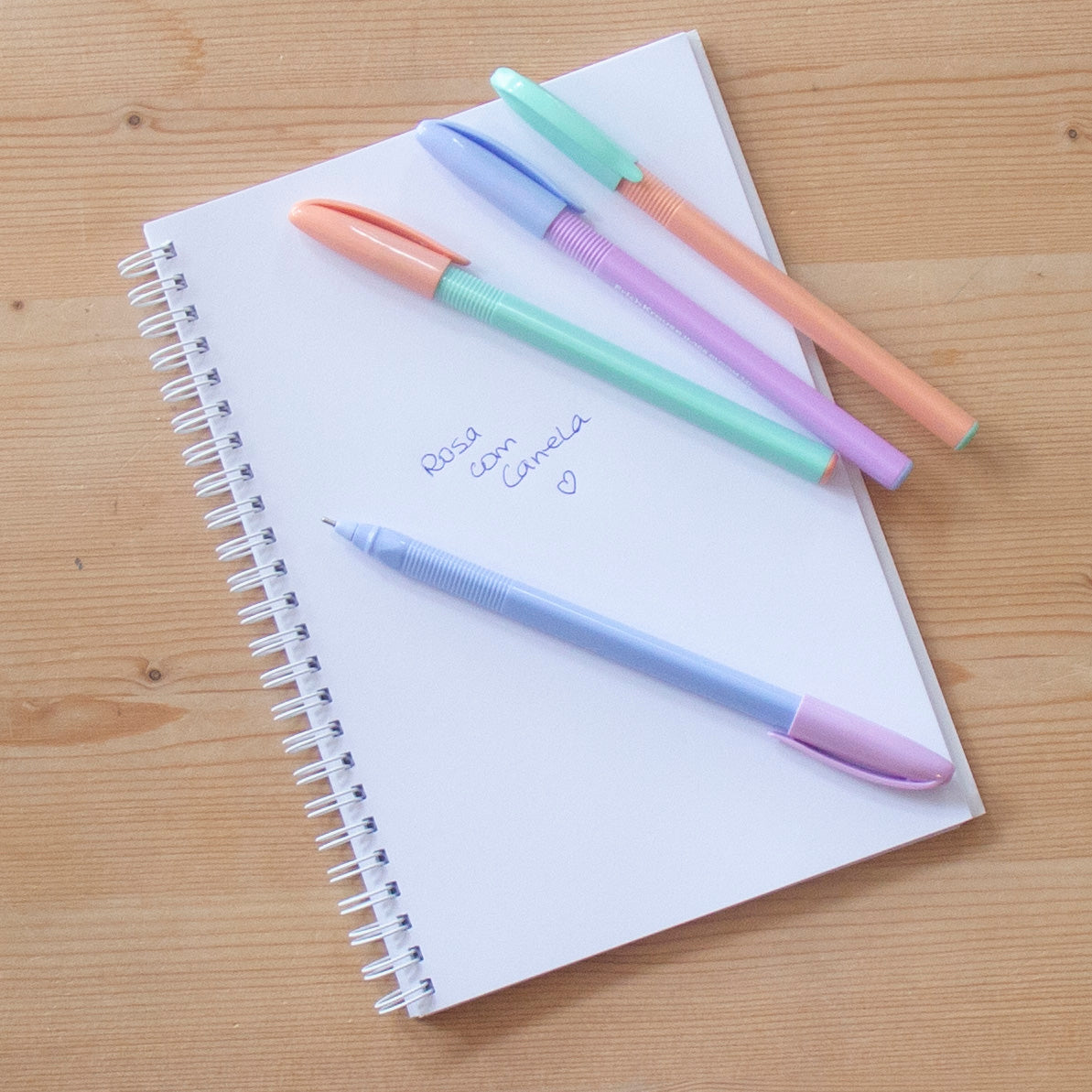 Kit com 4 Canetas de gel, escrevem azul e combinam 4 cores suaves no corpo da caneta.