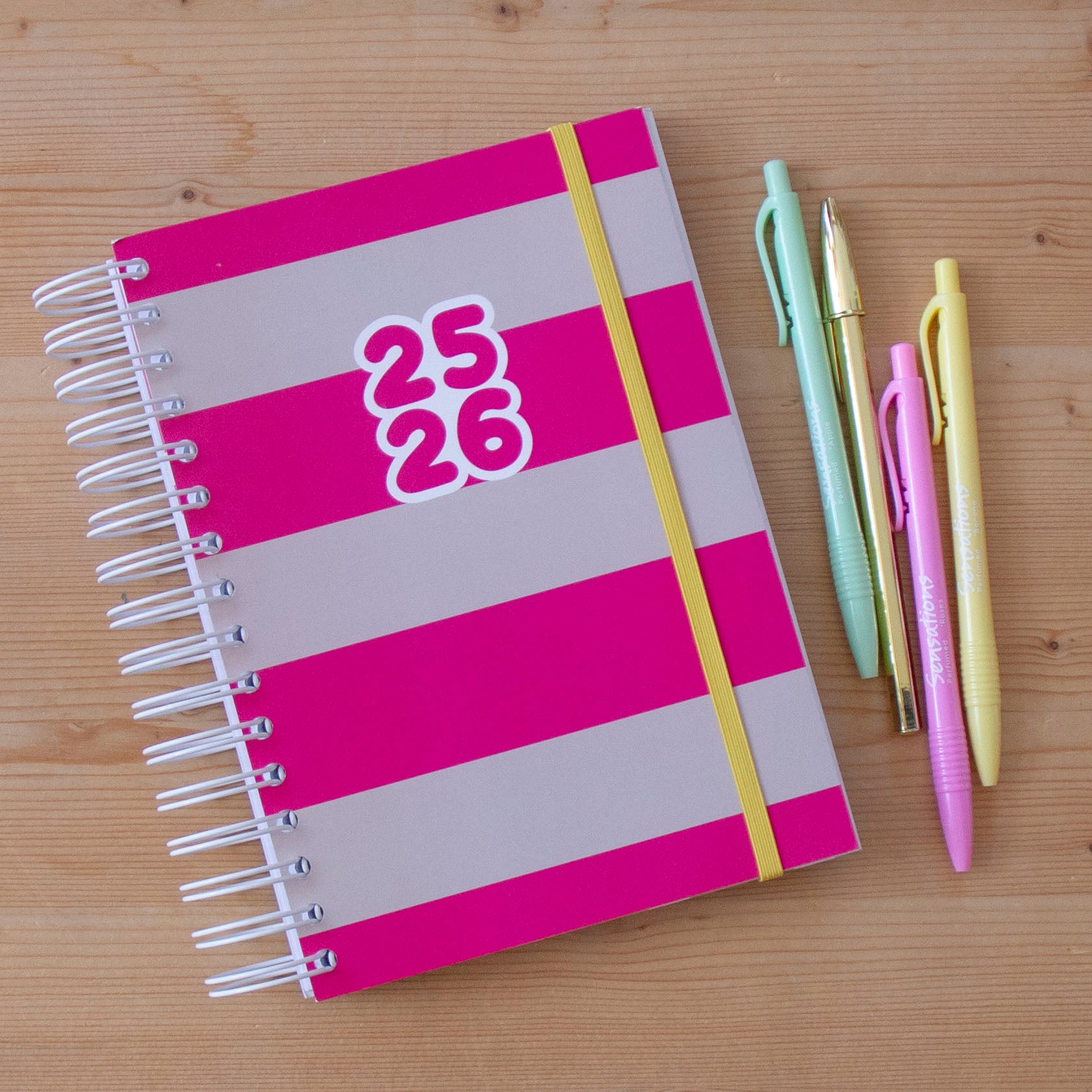 Agenda A5 Diária 2025/2026 Capa Dura PINK STRIPES