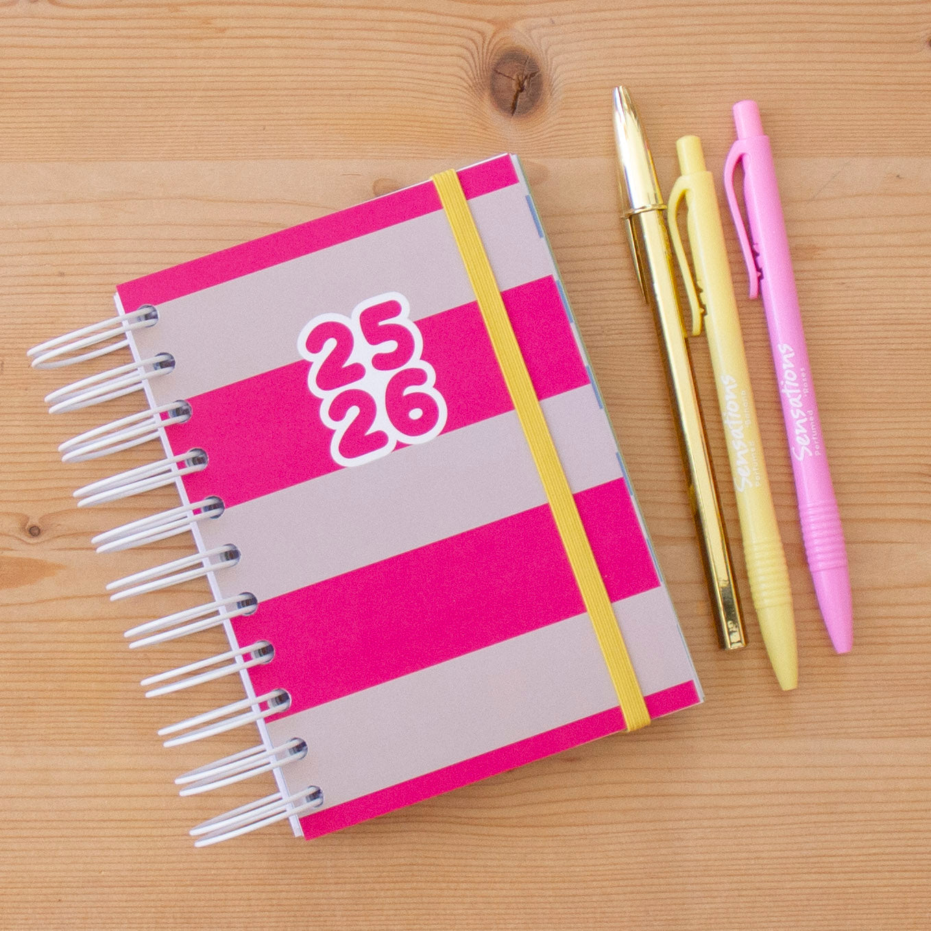 Agenda A6 Diária 2025/2026 Capa Dura PINK STRIPES